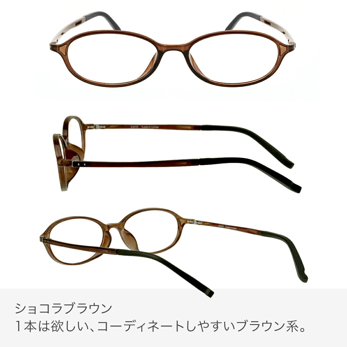 【試着交換も無料】度数 0.5~ 5色 おしゃれで軽量な老眼鏡 アイウェアエア 小さめオーバル ブルーライトカット