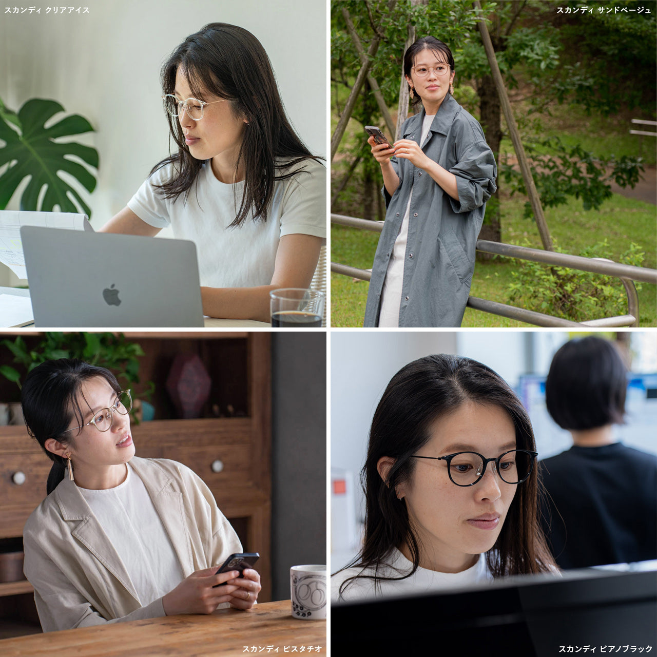 ![]() いつでも自然体でさらりと使える老眼鏡家の中でも、人目のある外出時でも、いつも欠かせないのがアイウェアエア スカンディ。アイウェアエア スカンディは、普通のメガネフレームと変わらない作りなので、一見老眼鏡には見えません。 デザインは軽やかさを重視。どんなコーディネートにも合わせやすいシンプルなデザインのフレームは、北欧の大自然を思わせる透明感のあるニュアンスカラーでよりおしゃれな印象を与えます。 ![]() 仕事中でも使える老眼鏡をさりげなく仕事中に掛けていても老眼鏡に見えません。目を守りながらPC作業などのデスクワークがはかどります。また、PCやスマホ使用中の疲れ目対策でも常用をおすすめします。![]()