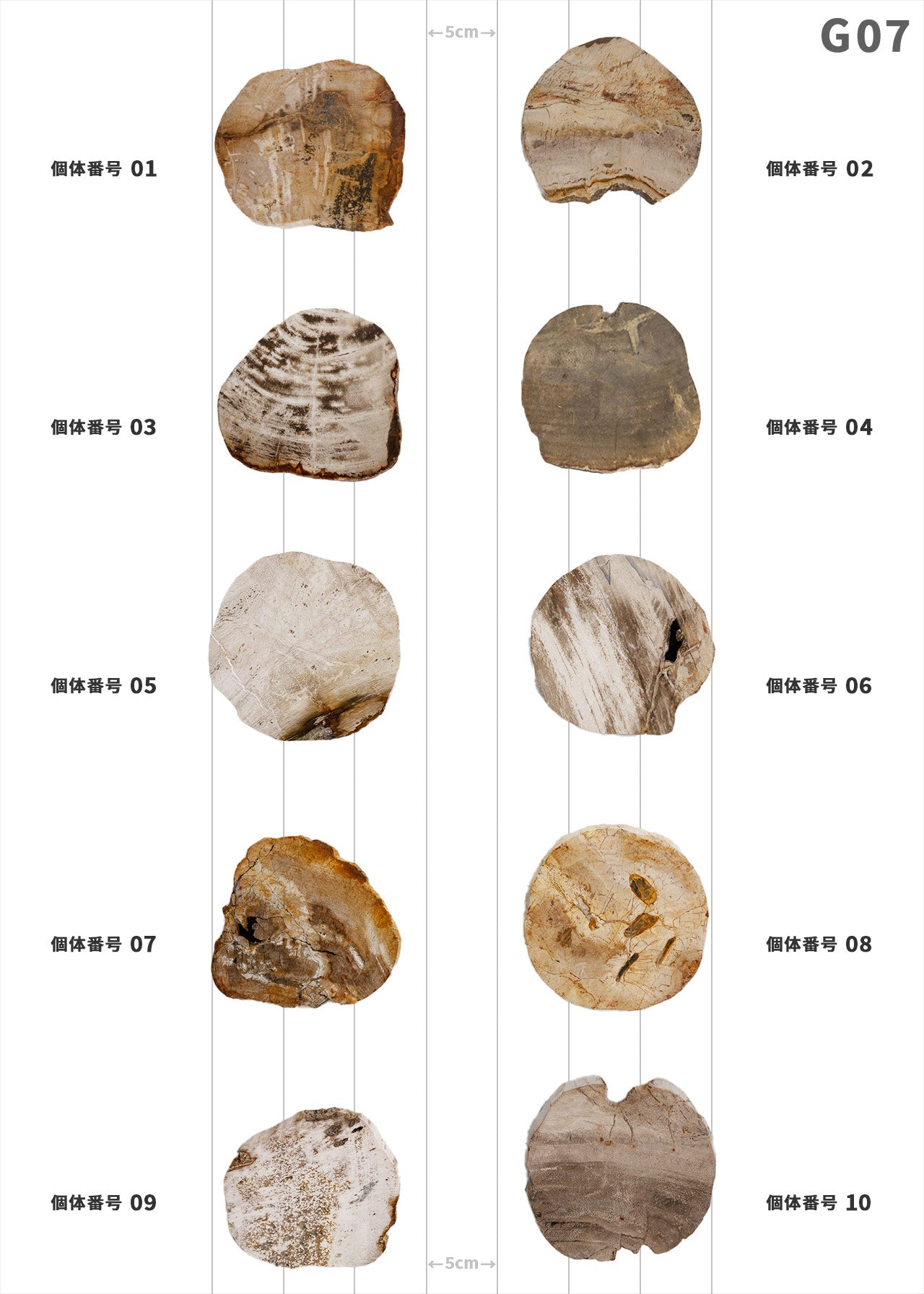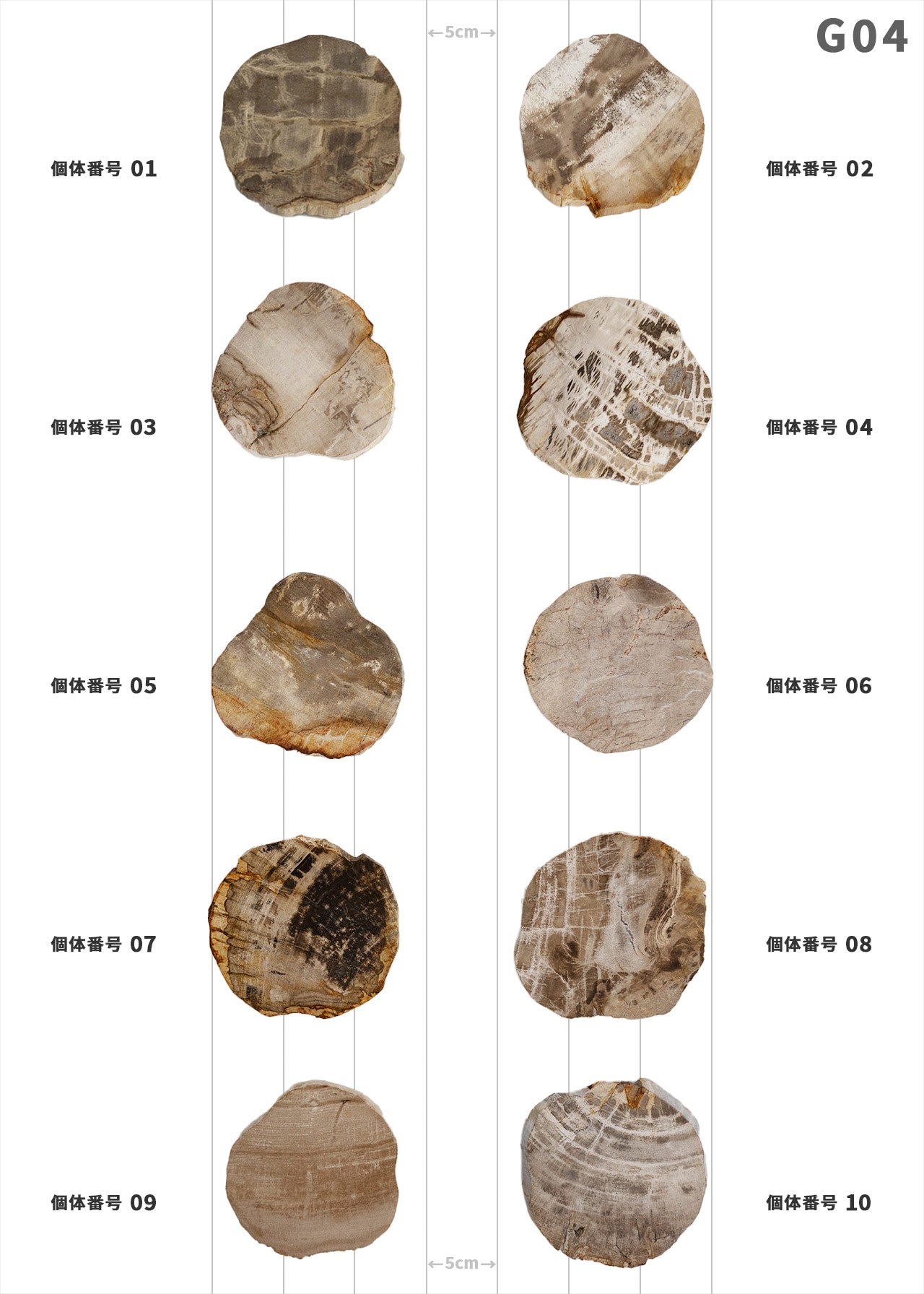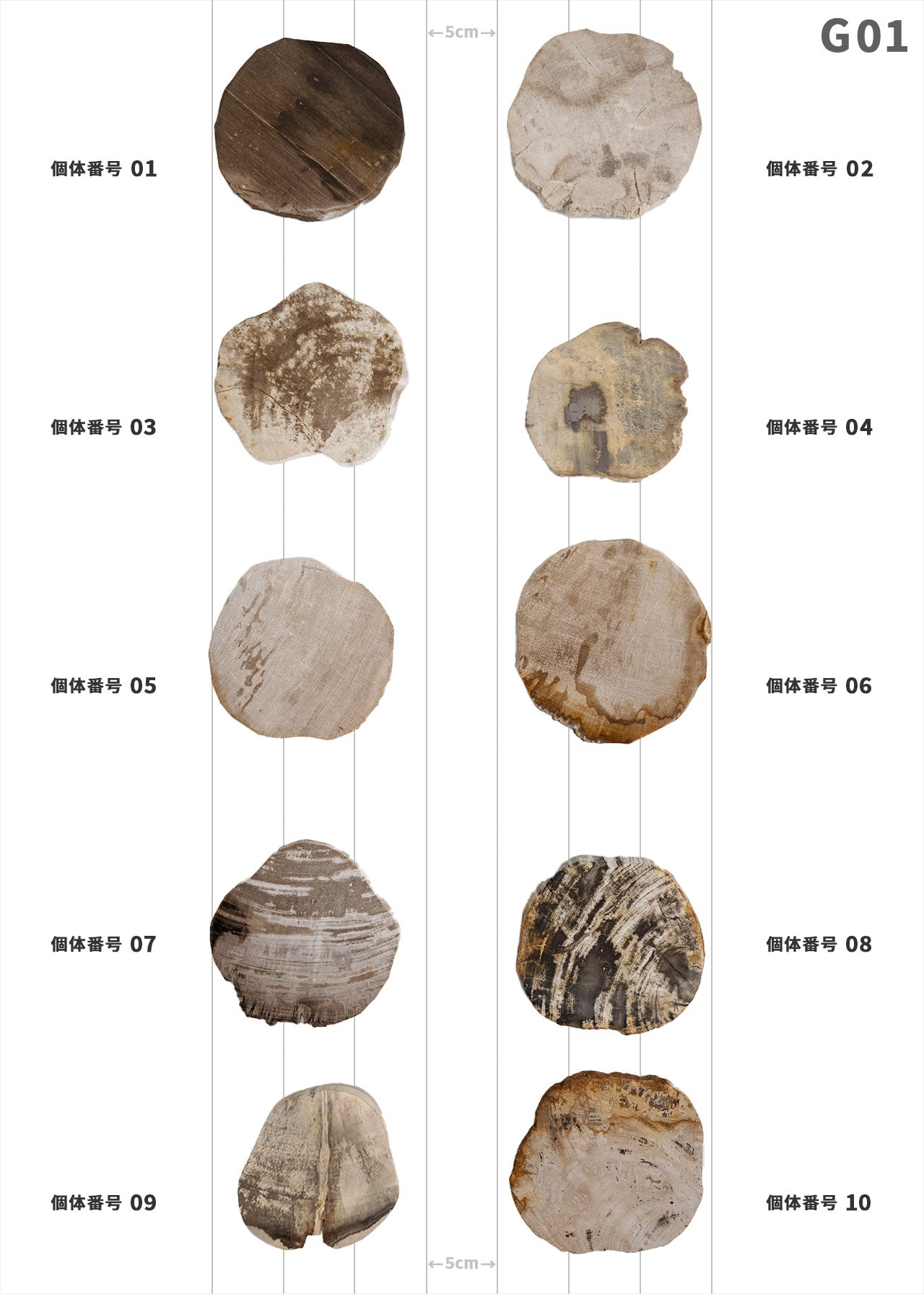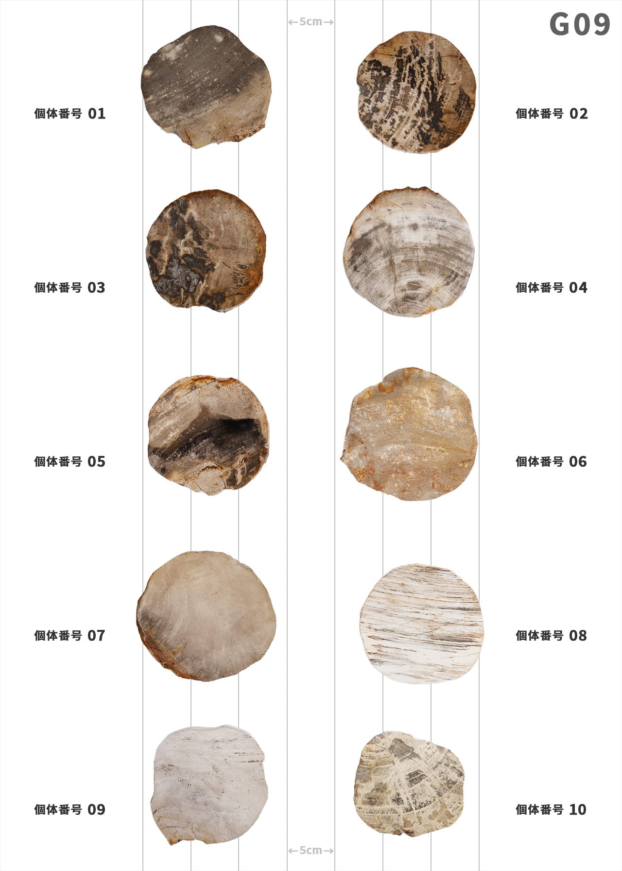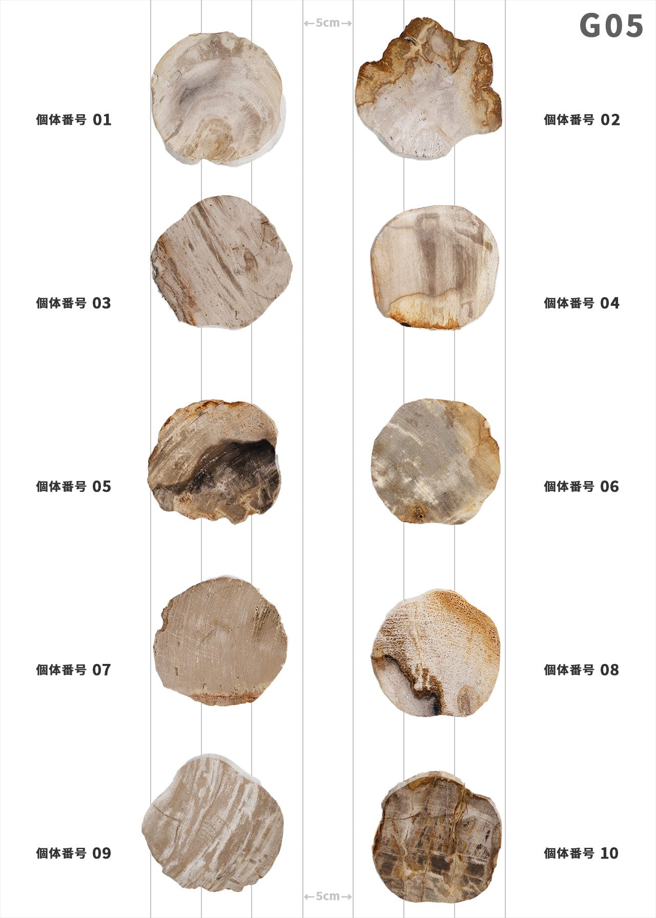 インテリアでもお手持ちの小物の下にプラスしてみると、より立体感が出てバランスが美しい空間を作れますよ。 眺めたいし使いたいから用途に合わせて複数買いもとてもおすすめ。 わたし専用のコースターとして家族分揃えるのも素敵ですよね。 化石の収集みたいで増えていくのが楽しくなるコースターです。 ![]() 粗削りも楽しんで![]() WOOD COASTERはナチュラルとブラックと分けて販売しておりますが、比較的黒の混じっていない個体をナチュラルとして撮り揃えております。厚さは 9mm~1cm前後で厚みにバラつきがあり、削り出したままの断面からは鉱物らしさを感じます。これは掘り起こされた珪化木の細い枝をそのままスライスし、なるべく加工を加えないことで 自然が持つ力強さやそれぞれが持つ個性をそのままに製作されています。 ![]() そのため、部分によっての厚みの違いからガタつきがある物や、表面が削られていたり穴が空いている物もありますが、珪化木が地層で眠っていた長い長い月日に思いを馳せ、個性としてお楽しみくださいね。 |