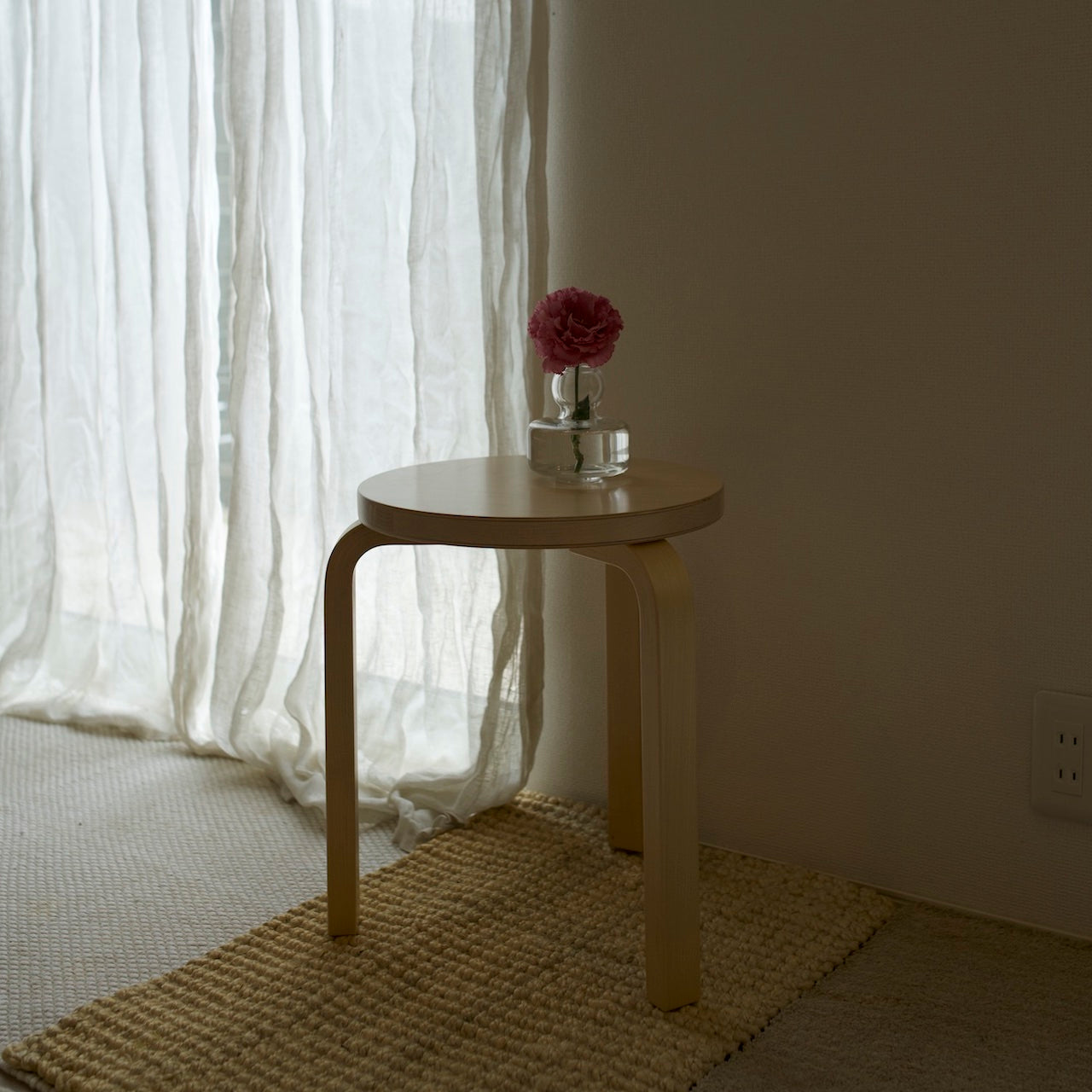 「本物はイミテーションと違って実にがっしりとした感じのものである。」渡欧しアアルトのもとで学んだ唯一の日本人建築家である武藤章さんの著書の中で、スツール60はこう書かれています。写真で見ると丸い座面の可愛らしい雰囲気のスツールに見えるのですが、実際使ってみるとわかるしっかりした木の厚みと、ブレのない存在感はまさにがっしり。これはArtek社唯一無二の「L-leg」という技法で作られた、頑丈な脚による印象が大きいと思うのです。
