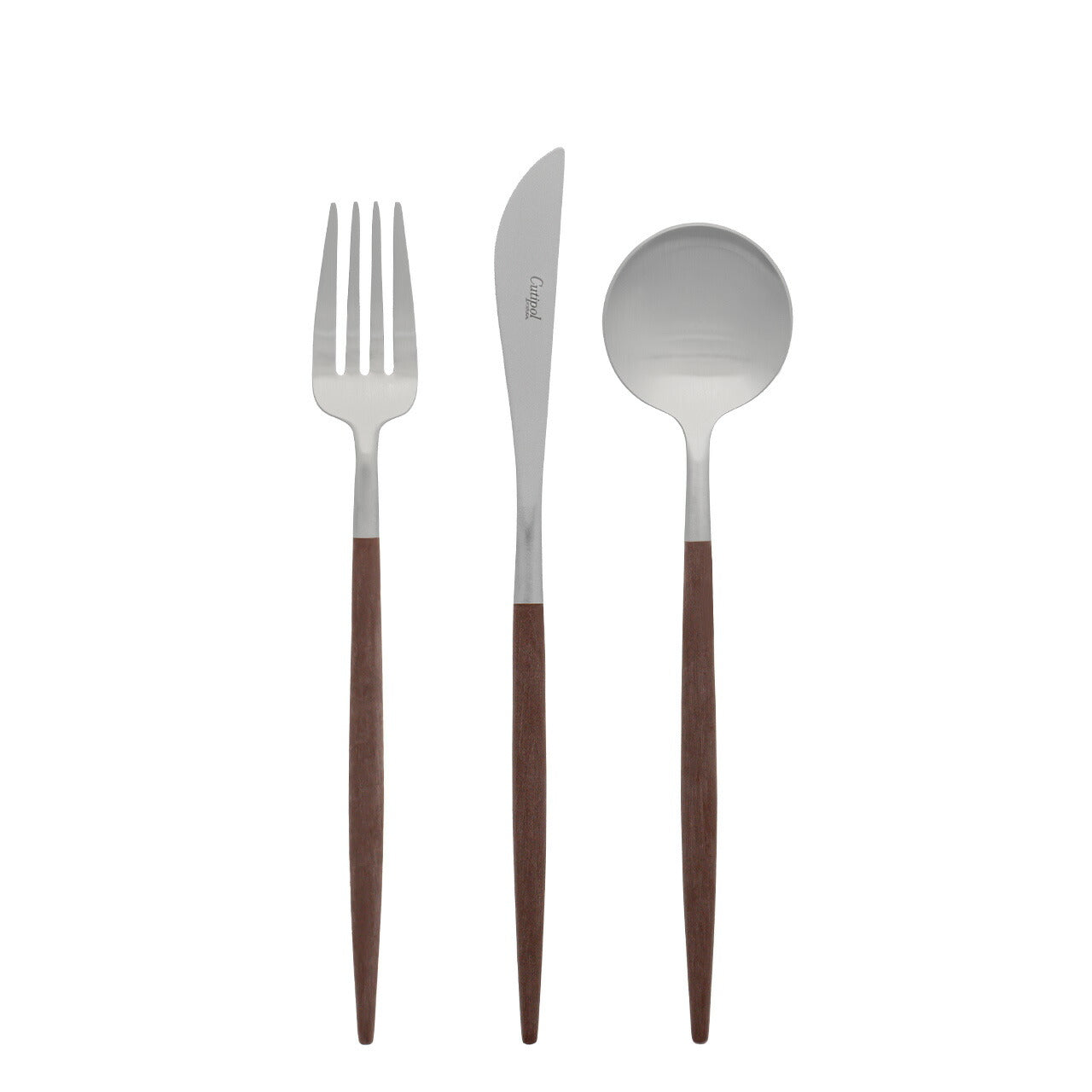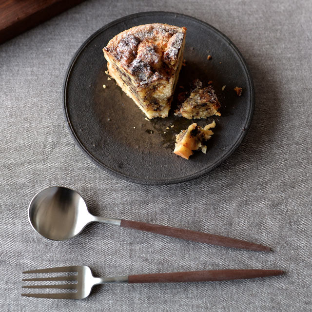 洗練されたフォルムで世界中で人気の高いポルトガルのカトラリーブランド「Cutipol」。1本1本ハンドメイドで仕上げられる作品とも言えるその美しいデザイン、人間工学に基づき設計された持ちやすさ、使いやすさをともなった機能的なカトラリーです。 細身の持ち手とステンレスとのコントラストでデザインされたGOAシリーズはクチポールを代表するシリーズ。適度なヘッドの重み、木製のようですべりにくいさらっとしたアセタール樹脂(25%ガラス繊維強化)の持ち手が絶妙なバランスで設計されており、誰もが使いやすさを実感できます。シンプルなのでどんなシーンともすうっと合ってしまう人気のブラウン×シルバーのフォークとスプーンのセットです。 デザートシリーズはディナーシリーズに比べやや小ぶりながら20cm前後のプレートと相性がよく、女性の手に収まるちょうどいいサイズ。 ■商品名 クチポール GOAデザート ナイフ・フォーク・スプーン3本セット ブラウン/マットシルバー ■サイズ(約) 長さ:スプーン 18cm、ナイフ 20cm、フォーク 18.5cm 重さ:スプーン 25g、ナイフ 21g、フォーク 19g ※ハンドメイドのため仕上げなど個体差があります。 ※輸送中の損傷を防ぐために個包装したうえエアクッション袋に梱包しております。 ■素材 18-10ステンレス、アセタール樹脂(25%ガラス繊維強化) 食洗機の使用可 ※高温洗浄は不可。手洗いをおすすめします。 ■製造 クチポール(キュティポール) ※当店はCutipolの日本正規取扱店です 生産国:ポルトガル