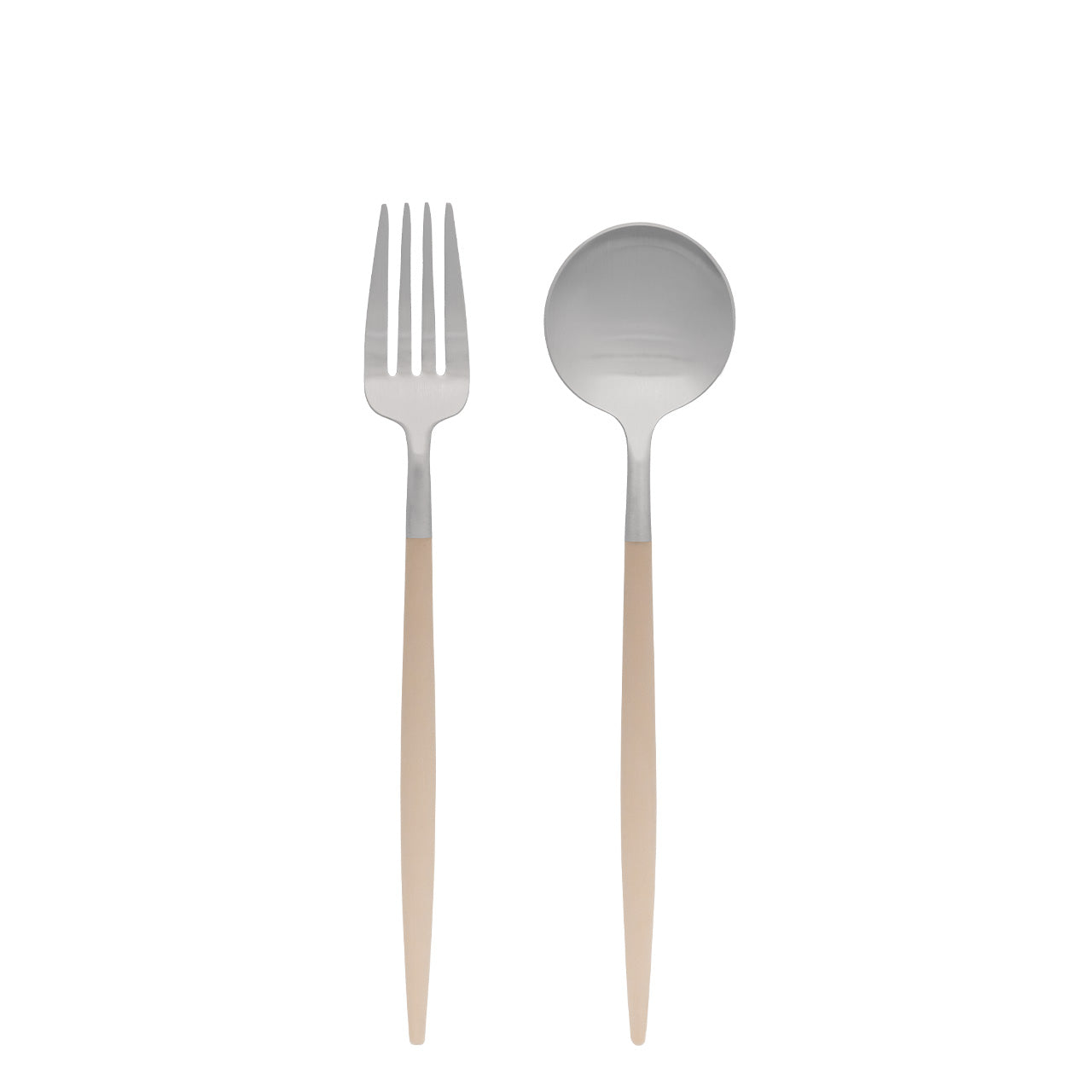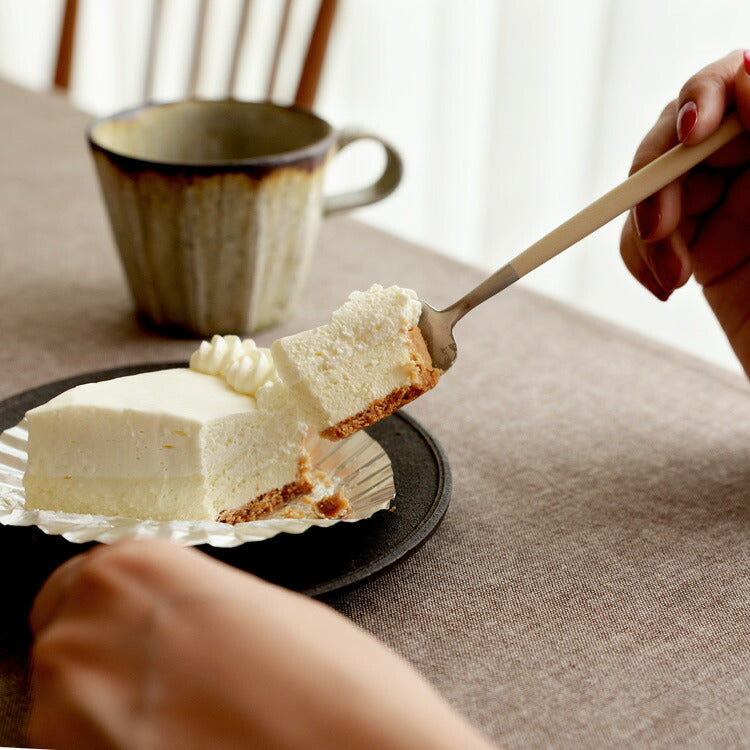 洗練されたフォルムで世界中で人気の高いポルトガルのカトラリーブランド「Cutipol」。1本1本ハンドメイドで仕上げられる作品とも言えるその美しいデザイン、人間工学に基づき設計された持ちやすさ、使いやすさをともなった機能的なカトラリーです。 細身の持ち手とステンレスとのコントラストでデザインされたGOAシリーズはクチポールを代表するシリーズ。適度なヘッドの重み、木製のようですべりにくいさらっとしたアセタール樹脂(25%ガラス繊維強化)の持ち手が絶妙なバランスで設計されており、誰もが使いやすさを実感できます。ナチュラルテイストのアイボリーカラーは、ウッド調のテーブルやお皿とも相性がよく温かい雰囲気を出してくれます。 デザートシリーズはディナーシリーズに比べやや小ぶりながら20cm前後のプレートと相性がよく、女性の手に収まるちょうどいいサイズ。スプーン・フォークセットは食事からケーキまで使える幅が広くておすすめです。 ■商品名 クチポール GOAデザート フォーク・スプーン2本セット アイボリー/マットシルバー ■サイズ(約) フォーク 長さ18.5cm、スプーン 長さ18cm 重さ(約):フォーク 19g、スプーン 25g ※ハンドメイドのため仕上げなど個体差があります。 ※輸送中の損傷を防ぐために個包装したうえエアクッション袋に梱包しております。 ■素材 18-10ステンレス、アセタール樹脂(25%ガラス繊維強化) 食洗機の使用可 ※高温洗浄は不可。手洗いをおすすめします。 ■製造 クチポール(キュティポール) ※当店はCutipolの日本正規取扱店です 生産国:ポルトガル