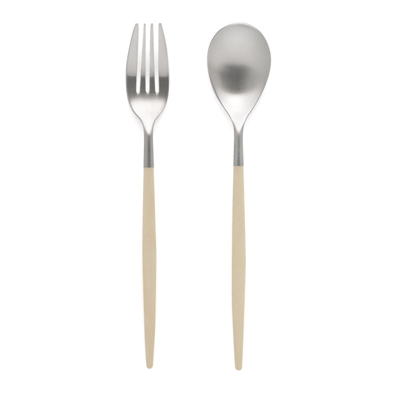 洗練されたフォルムで世界中で人気の高いポルトガルのカトラリーブランド「Cutipol」。1本1本ハンドメイドで仕上げられる作品とも言えるその美しいデザインは、人間工学に基づき設計された持ちやすさ、使いやすさをともなった機能的なカトラリーです。Cutipolカトラリー2019年発表のMIOシリーズ。エレガントでソフトな曲線が特徴で柔らかい印象のカトラリーです。クチポールの定番シリーズのGOAと同様、適度なヘッドの重み、木製のようですべりにくいさらっとしたアセタール樹脂(25%ガラス繊維強化)の持ち手が絶妙なバランスで設計されており、誰もが使いやすさを実感できます。シンプルなのでどんなシーンともすうっと合ってしまう人気のアイボリー×シルバーのフォークとスプーンのセットです。 ■商品名 クチポールMIOディナー フォーク・スプーン2本セット アイボリー/シルバー ■サイズ(約) フォーク 長さ22.5cm、スプーン 長さ22cm 重さ(約):フォーク 29g、スプーン 36g ※ハンドメイドのため仕上げなど個体差があります。 ※輸送中の損傷を防ぐために個包装したうえエアクッション袋に梱包しております。 ■素材 18-10ステンレス、アセタール樹脂(25%ガラス繊維強化) 食洗機の使用可 ※高温洗浄は不可。手洗いをおすすめします。 ■製造 クチポール(キュティポール) ※当店はCutipolの日本正規取扱店です 生産国:ポルトガル