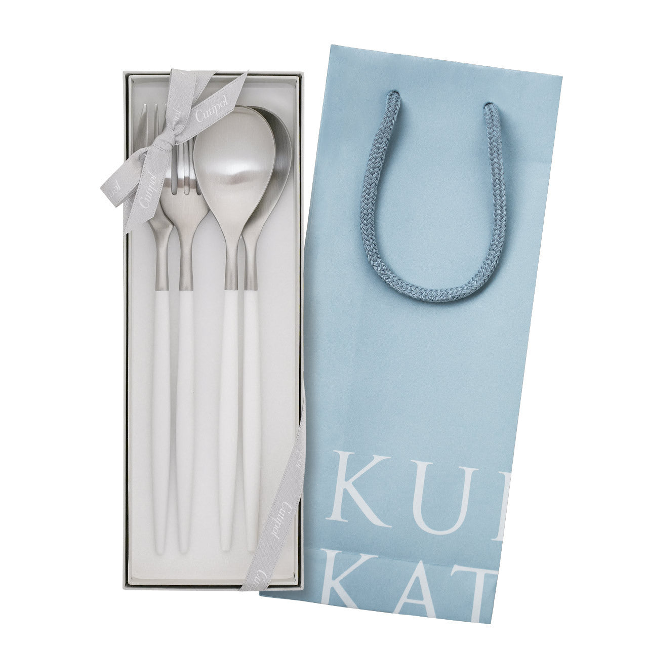 【正規取扱店】 クチポール MIO/ミオ ディナー 4本 ギフトセット ホワイト シルバー 白化粧箱