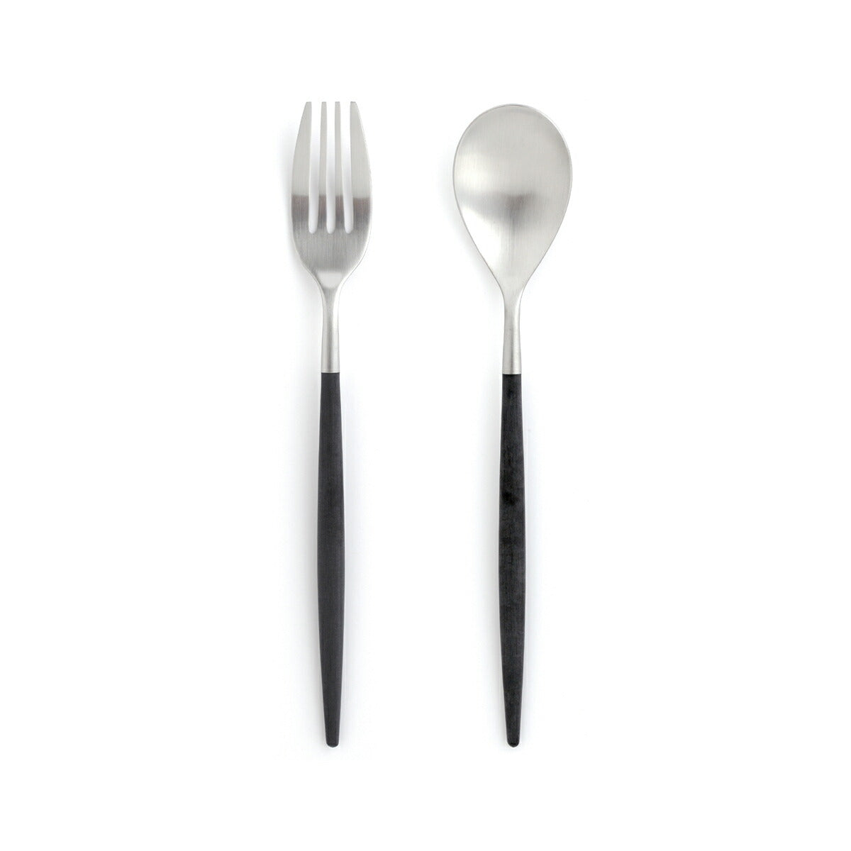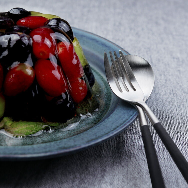 洗練されたフォルムで世界中で人気の高いポルトガルのカトラリーブランド「Cutipol」。1本1本ハンドメイドで仕上げられる作品とも言えるその美しいデザインは、人間工学に基づき設計された持ちやすさ、使いやすさをともなった機能的なカトラリーです。Cutipolカトラリー2019年発表のMIOシリーズ。エレガントでソフトな曲線が特徴で柔らかい印象のカトラリーです。クチポールの定番シリーズのGOAと同様、適度なヘッドの重み、木製のようですべりにくいさらっとしたアセタール樹脂(25%ガラス繊維強化)の持ち手が絶妙なバランスで設計されており、誰もが使いやすさを実感できます。シンプルなのでどんなシーンともすうっと合ってしまう人気のホワイト×シルバーのフォークとスプーンのセットです。 デザートシリーズはディナーシリーズに比べやや小ぶりながら20cm前後のプレートと相性がよく、女性の手に収まるちょうどいいサイズ。スプーン・フォークセットは食事からケーキまで使える幅が広くておすすめです。 ■商品名 クチポールMIOデザート フォーク・スプーン2本セット ブラック/マットシルバー ■サイズ(約) フォーク 長さ18.5cm、スプーン 長さ18cm 重さ(約):フォーク 19g、スプーン 25g ※ハンドメイドのため仕上げなど個体差があります。 ※輸送中の損傷を防ぐために個包装したうえエアクッション袋に梱包しております。 ■素材 18-10ステンレス、アセタール樹脂(25%ガラス繊維強化) 食洗機の使用可 ※高温洗浄は不可。手洗いをおすすめします。 ■製造 クチポール(キュティポール) ※当店はCutipolの日本正規取扱店です 生産国:ポルトガル