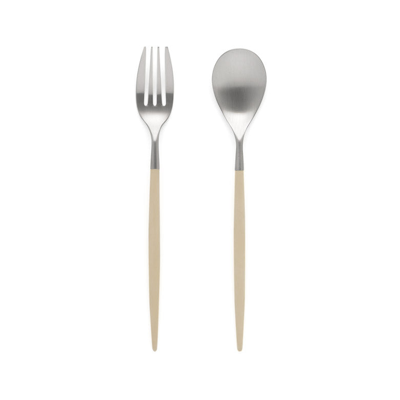 洗練されたフォルムで世界中で人気の高いポルトガルのカトラリーブランド「Cutipol」。1本1本ハンドメイドで仕上げられる作品とも言えるその美しいデザインは、人間工学に基づき設計された持ちやすさ、使いやすさをともなった機能的なカトラリーです。Cutipolカトラリー2019年発表のMIOシリーズ。エレガントでソフトな曲線が特徴で柔らかい印象のカトラリーです。クチポールの定番シリーズのGOAと同様、適度なヘッドの重み、木製のようですべりにくいさらっとしたアセタール樹脂(25%ガラス繊維強化)の持ち手が絶妙なバランスで設計されており、誰もが使いやすさを実感できます。シンプルなのでどんなシーンともすうっと合ってしまう人気のホワイト×シルバーのフォークとスプーンのセットです。 デザートシリーズはディナーシリーズに比べやや小ぶりながら20cm前後のプレートと相性がよく、女性の手に収まるちょうどいいサイズ。スプーン・フォークセットは食事からケーキまで使える幅が広くておすすめです。 ■商品名 クチポールMIOデザート フォーク・スプーン2本セット ホワイト/マットシルバー ■サイズ(約) 長さ:フォーク 19.3cm、スプーン 19.1cm 重さ(約):フォーク 18g、スプーン 23g ※ハンドメイドのため仕上げなど個体差があります。 ※輸送中の損傷を防ぐために個包装したうえエアクッション袋に梱包しております。 ■素材 18-10ステンレス、アセタール樹脂(25%ガラス繊維強化) 食洗機の使用可 ※高温洗浄は不可。手洗いをおすすめします。 ■製造 クチポール(キュティポール) ※当店はCutipolの日本正規取扱店です 生産国:ポルトガル