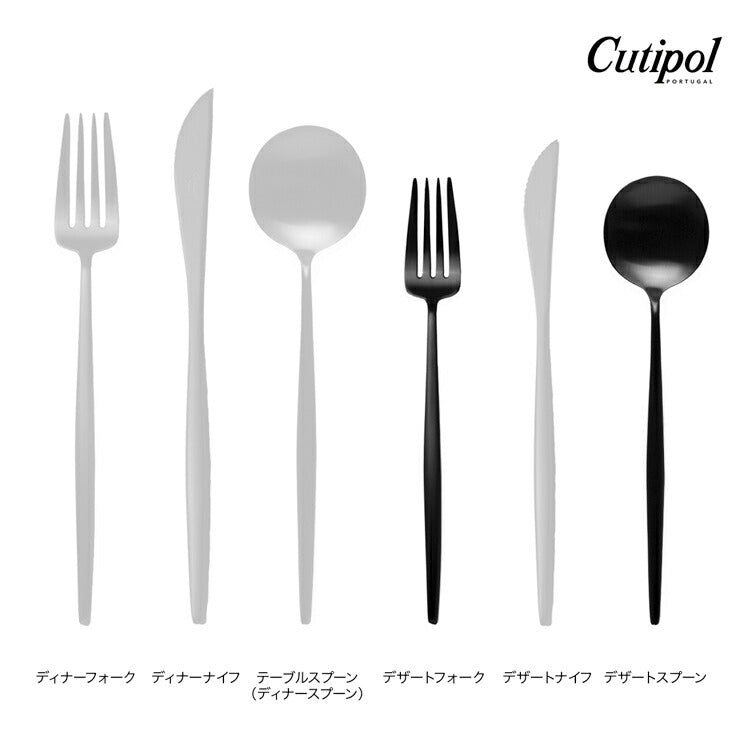 洗練されたフォルムで世界中で人気の高いポルトガルのカトラリーブランド「Cutipol」。1本1本ハンドメイドで仕上げられる作品とも言えるその美しいデザインは、人間工学に基づき設計された持ちやすさ、使いやすさをともなった機能的なカトラリーです。細身の持ち手とオールステンレスならではの適度な重みで、手にする喜びをデザインしたMOONシリーズ。特に、黒染め加工された精悍なイメージとMOONの華奢なデザインが融合したマットブラックは、クチポールカトラリーの傑作のひとつです。 GOAシリーズのデザートサイズに比べやや小ぶりながら重みがあるためカジュアルになりすぎず、やや大きめのケーキ用、フルーツ用としても重宝します。 ■商品名 クチポール MOON デザート フォーク・スプーン2本セット マットブラック ■サイズ(約) 重さ:スプーン 39g、フォーク 32g ※ハンドメイドのため仕上げなど個体差があります。 ※輸送中の損傷を防ぐために個包装したうえエアクッション袋に梱包しております。 ■材質 18-10ステンレス(PVDブラックマットコーティング) 食洗機の使用可。 ※カトラリーどうしの接触は避けてください。 ※90℃以上の洗浄は避け、洗浄後はすぐに取り出し水気を拭いて乾燥させてください。 ※塩素系洗剤、研磨剤、スチールたわし、電子レンジ、オーブン使用不可。 ■製造 クチポール(キュティポール) ※当店はCutipolの日本正規取扱店です 生産国:ポルトガル