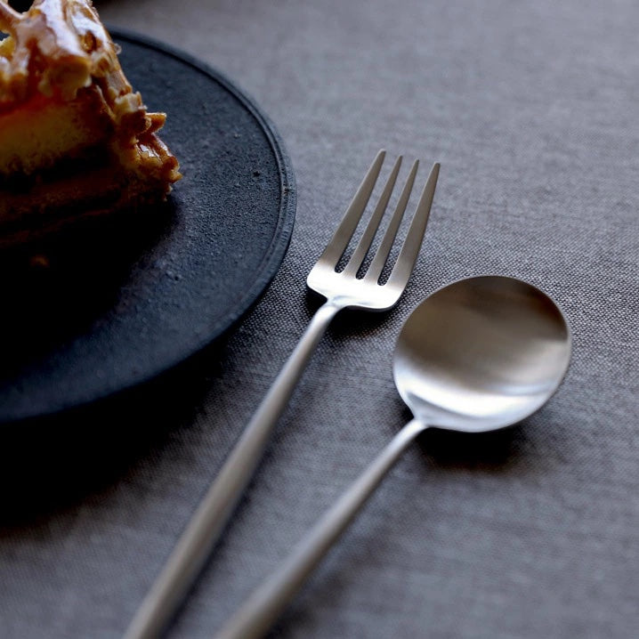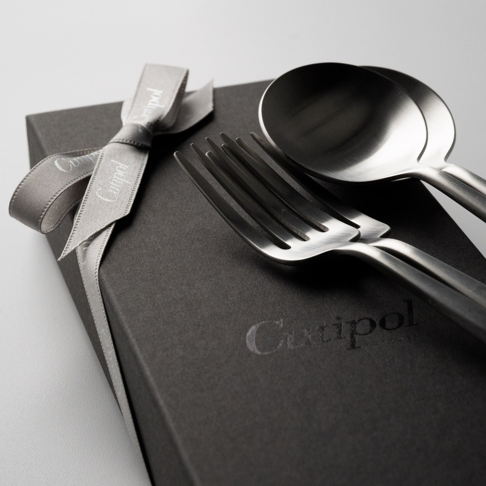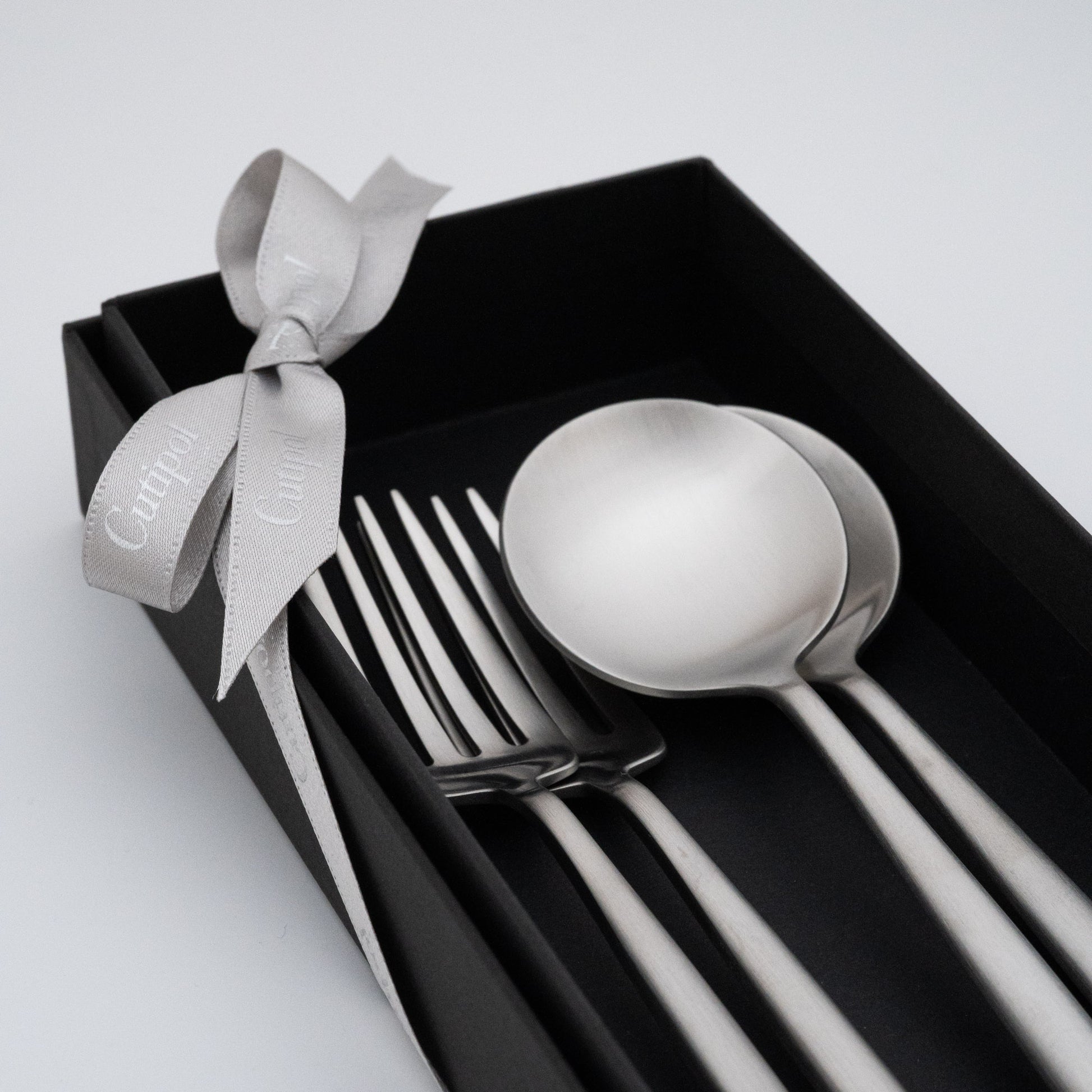 洗練されたフォルムで世界中で人気の高いポルトガルのカトラリーブランド「Cutipol」。1本1本ハンドメイドで仕上げられる作品とも言えるその美しいデザインは、人間工学に基づき設計された持ちやすさ、使いやすさをともなった機能的なカトラリーです。細身の持ち手とオールステンレスならではの適度な重みで、手にする喜びをデザインしたMOONシリーズ。シンプルで飽きのこないデザインがすべての料理にマッチします。 大切な人へのギフトに、日常使いにちょうどいいデザートフォークとスプーンをペアのカトラリーセットでご用意しました。 クチポールロゴ入りのギフトボックスにロゴ入りリボンをかけてお届け。クチポール正規品の証となる日本語版のリーフレットも付属しており、クチポール社のメッセージとともに製造風景などが紹介されています。また、当店オリジナルショッパー(紙袋)が付属しておりますのでそのままプレゼントとしてお渡しいただけます。 ■素材