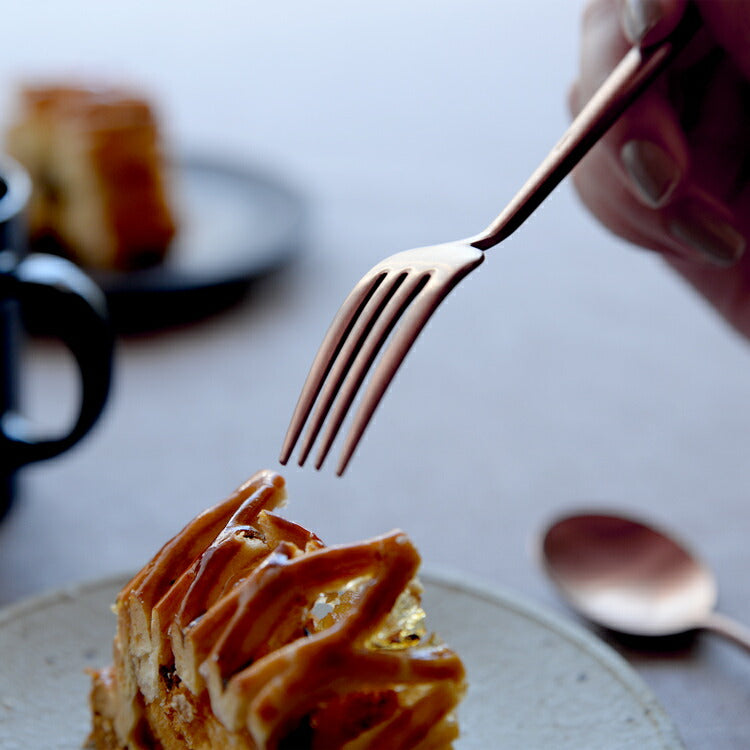 洗練されたフォルムで世界中で人気の高いポルトガルのカトラリーブランド「Cutipol」。1本1本ハンドメイドで仕上げられる作品とも言えるその美しいデザインは、人間工学に基づき設計された持ちやすさ、使いやすさをともなった機能的なカトラリーです。細身の持ち手とオールステンレスならではの適度な重みで、手にする喜びをデザインしたMOONシリーズ。 GOAシリーズのデザートサイズに比べやや小ぶりながら重みがあるためカジュアルになりすぎず、やや大きめのケーキ用、フルーツ用としても重宝します。 アンバーゴールドは和食器・洋食器どちらにも合わせやすく、普段の食卓に合わせるだけでおしゃれ感がぐんっとあがります。 ■商品名 クチポール MOON デザート フォーク・スプーン2本セット アンバーゴールド ■サイズ(約) 長さ:スプーン 16.8cm、、フォーク 17cm 重さ:スプーン 39g、フォーク 32g ※ハンドメイドのため仕上げなど個体差があります。 ※輸送中の損傷を防ぐために個包装したうえエアクッション袋に梱包しております。 ■材質 18-10ステンレス(24K PVDカッパーコーティング) 食洗機の使用可。 ※カトラリーどうしの接触は避けてください。 ※90℃以上の洗浄は避け、洗浄後はすぐに取り出し水気を拭いて乾燥させてください。 ※塩素系洗剤、研磨剤、スチールたわし、電子レンジ、オーブン使用不可。 ■製造 クチポール(キュティポール) ※当店はCutipolの日本正規取扱店です 生産国:ポルトガル