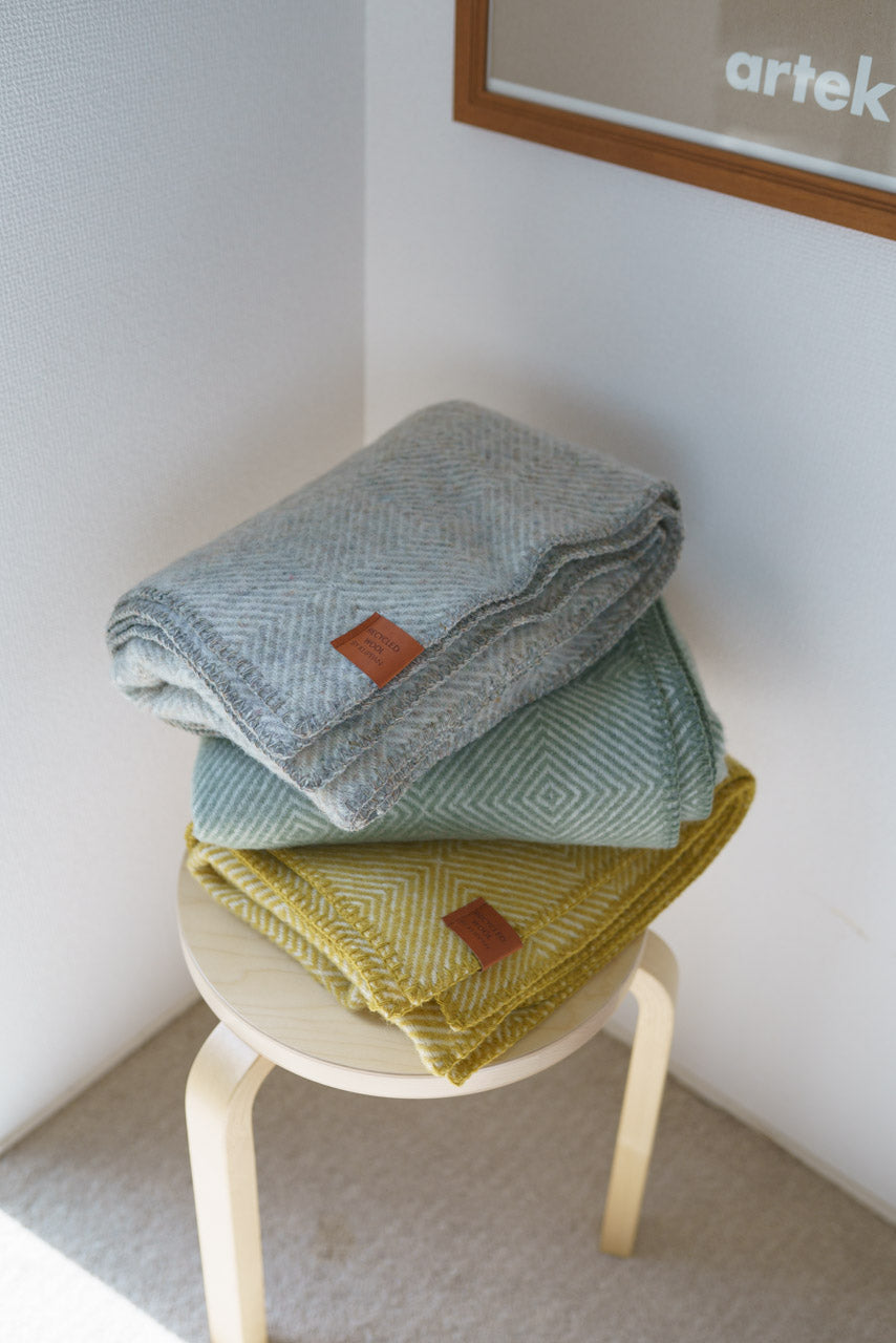 このスローの素材は 毛100%(リサイクルウール25%、ラムウール75%)