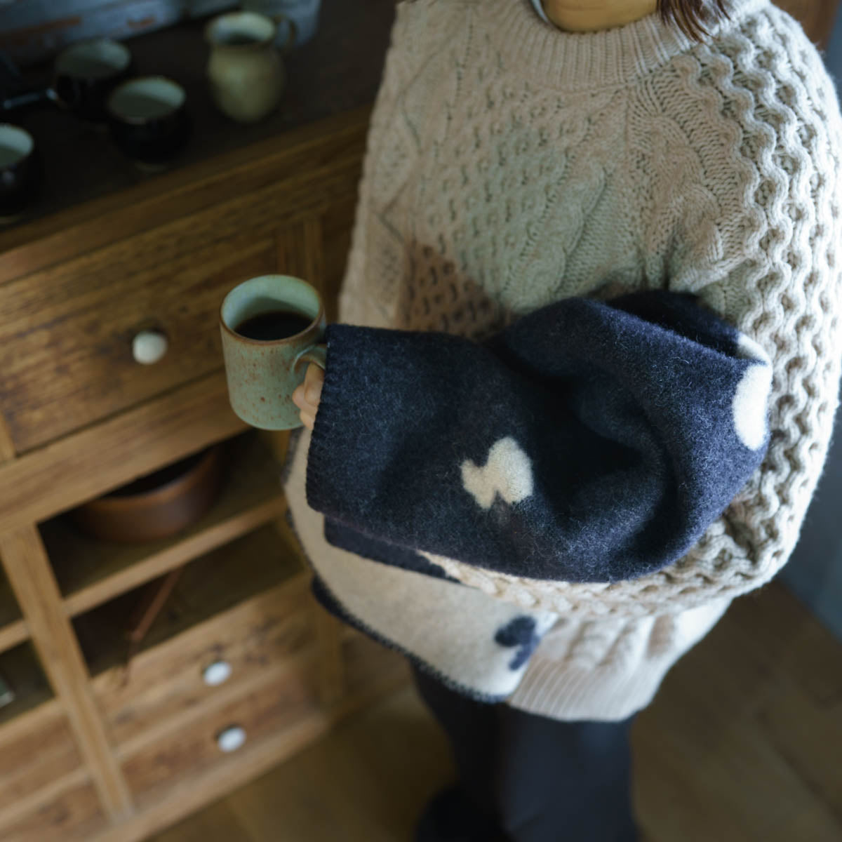 ![]() ちょうどいいが心地いい寒い日が続き朝から晩まで家族でブランケット争奪戦が日課の今日このごろ。サイズ感や素材みんな好き好きあるようで取り合っていますが私のお気に入りはKLIPPAN×minaperhonenのウールミニブランケット。 つつまる、くるまるというより冷えないように覆うといったひざ掛けがしっくりくる。 映画館や美容院で貸し出されるあのサイズ感です。 ![]() 一家のお母さんのわたしはとにかく立って座っての繰り返し。 その度さっと椅子に投げ出してもだらしなくならないのがズボラな私にはとっても嬉しい。 また、集中したいデスクワークや読書中もズルズル落ちて床にすってしまったりせっかくのお気に入りを椅子に引き込んでしまったりってプチストレスですよね。 ![]() 「床にすらず足元はしっかり覆ってくれる」 求めていたちょうどいいサイズ感です。 コンパクトながら一枚で満足できる暖かさにさすが厳しい冬を耐え抜く北欧の老舗KLIPPANのブランケットだなと感心しました。 納得のあたたかさ、、、その秘密とは?![]() ウールの糸と糸の間に空気がしっかりと入ることで熱を溜め込み逃さない。 毛質は柔らかいのに実際に私が持っている他のブランケットよりクタッとしていないのでしかっりと冷えから私を守り長く暮らし寄り添ってくれるのだろうと頼もしい存在。 ![]() 目の詰まった折り目は起毛がねないので私は冷えた床にさっと引いてコンパクトなラグ代わりに使ったりもしています。 信頼の暖かさだからだからこそ「世界一幸福なブランケット」と呼び声も高いのだなと納得です。 ![]() 世界一幸福なブランケットそれは使う私達だけではなく過多な薬品を使わないず広い大地で心地よく育った羊のウールを使用し整った労働環境で安心安全自社工場で製造管理され製造されています。手に取る私達だけではなく手元に届く過程までもが世界一幸せなブランケットと呼ばれる理由なのです。 その分コストもかかりますからお手頃とは言えない価格かもしれません。 ですが長い目で見たときどうでしょう。 品質が格段に良いウールは日頃から軽くお手入れしてあげるだけで格段に長持ちします。 お母さんから赤ちゃんへ。 机に向かうお年頃まで使ったあとは思い出と共にお母さんの手元にまた戻ってくる。 家族で使うものだから特に子供たちにはそんな生産の過程から優しさが詰まったブランケットを使ってもらいたいのです。 育てていくように愛着を持ってお手入れしながら長く暮らしを共にすることってとても心地の良いことですよね。 簡単おうちでできるウールのお手入れ方法![]() ここで末永く使っていただくためにお手入れ方法をご紹介。 ウールが持つ天然の油分がしっかりと保護してくれているので基本的にお洗濯の必要は有りません。 普段のお手入れは「陰干し」と「ブラッシング」だけでOK。 まず、多少の汚れはパタパタと払い時々風通しの良いところで干してあげてください。 次にブラッシング。チリやホコリ、ゴミを取り除きながら毛並みを整えましょう。 繊維の固まりをほぐしてあげることで、毛玉の発生も防ぎますよ。 一生モノとの呼び声も高いKLIPPANのウールブランケット。 お手入れの時間を少しとっていただくことでより愛着も増し、ふっくらしたウールを長くお楽しみいただけたらと思います。 ![]() お気に入りはいつもそばにちょっと小脇に引っ掛けて好きな場所で自由に過ごすひととき。たゆたう蝶に春が待ち遠しくなりました。 ![]() 人にも大地にも負荷を与えない「エコウール」![]() KLIPPANの「エコウール(エコラムウール)」とは 世界的に問題視されているミュールジングを行わず、身体への殺虫剤や抗生物質を含む飼料を未使用。 広々とした草原で羊たちがのびのびと健康的に生きる環境での飼育された生後約6ヶ月の子羊から初めて刈り取ったラムウールの一種。 一本一本の繊維が柔らかく、クリンプ(巻き毛)が多いので空気をたっぷり含んで温かく厚みがあり、際立つ白さが魅力的です。 羊だけでなく人にも大地にも負荷を与えないサステナブルな「エコウール」を使用した安心・安全のブランケット。 ご自身にはもちろん、大切な方への贈り物としても選ばれています。 リサイクルビニールを使ったKLIPPANの専用袋に入れてお届け![]() 環境に貢献できる選択としてクリッパン専用袋を、生分解までに長い時間を要する酸化型生分解性プラスチックから再生プラスチックへの変更を決めました。 再生プラスチック素材の特性上、くすんだ色味で黒い斑点などありますが、品質上の問題はございません。 レビュー投稿で「KLIPPANくすのき防虫ブロック」をプレゼント!![]() KLIPPAN(クリッパン)× mina perhonen(ミナペルホネン)のコラボレーション![]() 2013年秋にはスウェーデン国内デザイナーのみとコラボレーションを経験してきたKLIPPANがはじめて国外デザイナーである皆川明氏と協働し、コレクションを発表しました。 以前からKLIPPANのラムウールブランケット
