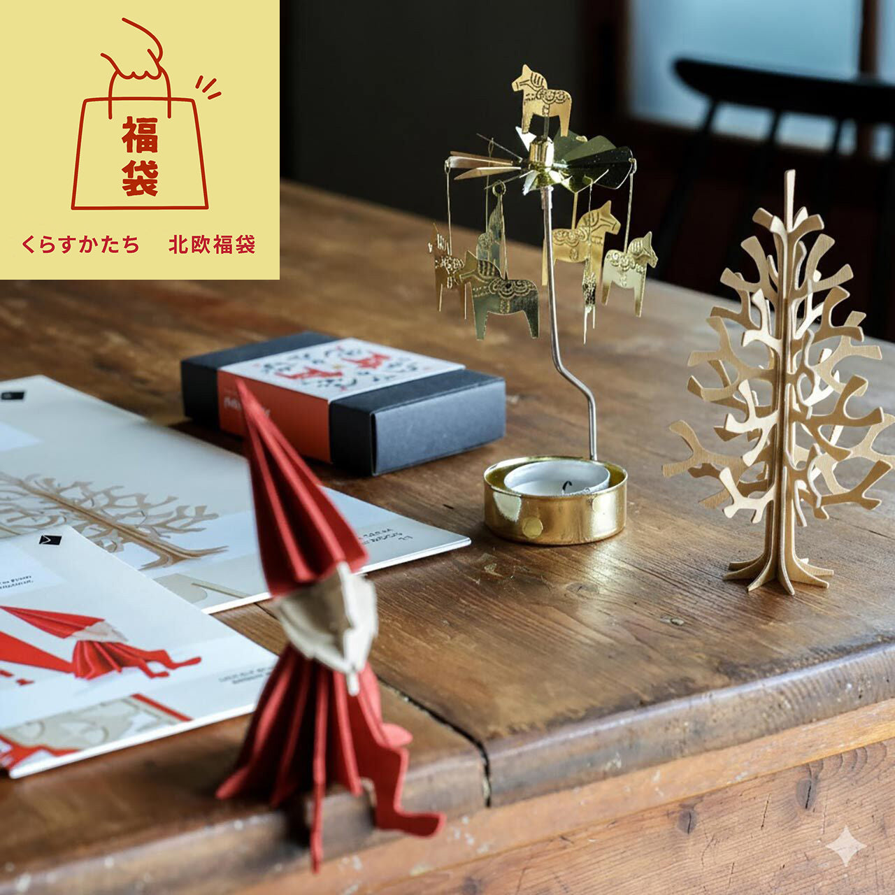 白樺の木の板をくりぬき、組み立てて作るlovi(ロヴィ)のモミの木とエルフ、そしてロータリーキャンドルをセットにした北欧インテリアにぴったりの3点をお得な福袋にしました!