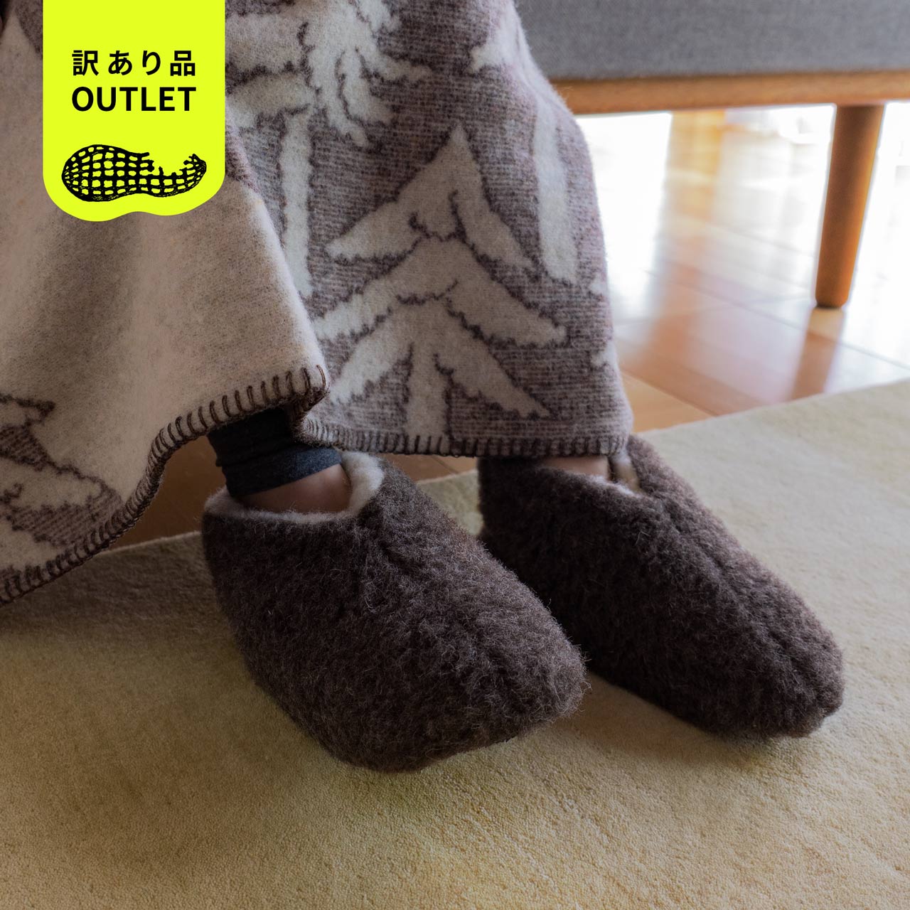 羊毛のもこもこコロンとしたかわいいフォルム。「いってらっしゃーい、おや?」ポンポーンッと脱いだ後のたたずまいもぬいぐるみのようでなんだか愛らしい、内側も外側も100%ピュアウールを使ったポーランドのルームシューズです。 スリッパと違いかかと、くるぶしまで足首がしっかり隠れるので暖かくてとにかく動きやすい「ブーティ スキッパー」。柔らかい新毛ウール100%ならではの保温性と、吸湿性に優れ蒸れることがないため素足で履くのも気持ちいい、そんな包まれるようなポカポカの温かさを体感できます。 底部は滑り止めのラバードットつき。ウールのクッションが効いた柔らかいソールで圧迫感のない軽い履き心地です。パタパタ足音は立ちません。 冬寒いポーランドでは住宅は冬向きに作れていて室内は暖かいですが、足元はしっかり保温して冷え対策することが健康にもつながる、ヨーロッパの暮らしの知恵ですね。 ■商品名 コールドブレーカー ブーティ スキッパー ■サイズ 35/36(22cm):全長23cm x 幅9.5cm 重さ約75g(片足) 37/38(23cm):全長25cm x 幅10cm 重さ約80g(片足) 39/40(24cm):全長26cm x 幅11cm 重さ約85g(片足) 41/42(25-26cm):全長27cm x 幅11.5cm 重さ約90g(片足) ※ウール100%のため目安数値です。 ※コールドブレーカーのブーティタイプサイズ表記より小さめとなります。 ■素材 表地裏地/ピュアウール100%(ウールマーク取得)、底部/アクリル、ゴム ■洗濯表示 ![]() 繊維製品の取扱い表示記号について 消費者庁ページ → ■カラー グレー、ベージュ、ブラウン、チャコール、ブラック ■製造 ポーランド製 ■ギフトラッピング 現在はラッピング済みで販売している商品を除き、ギフトラッピングは承っておりません。お客様自身で簡単にラッピングができる以下のキットをご活用ください。 ![]() ■その他ルームシューズはこちら