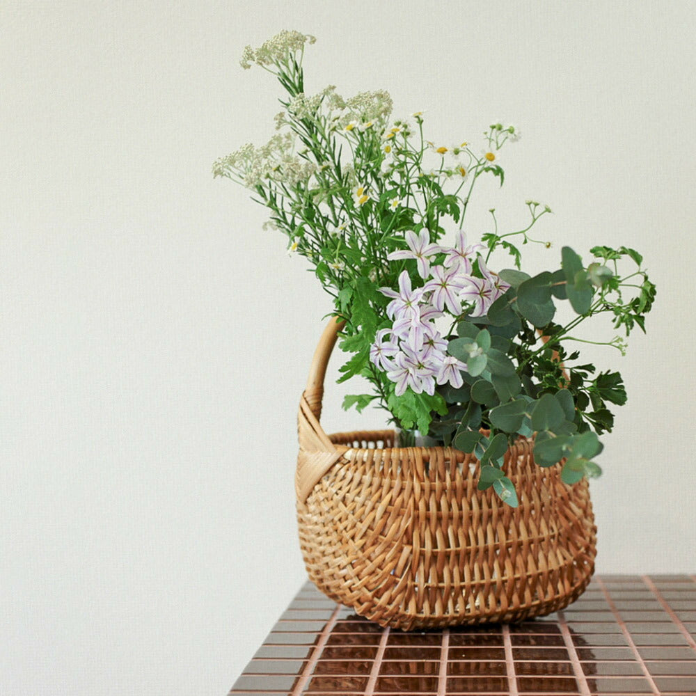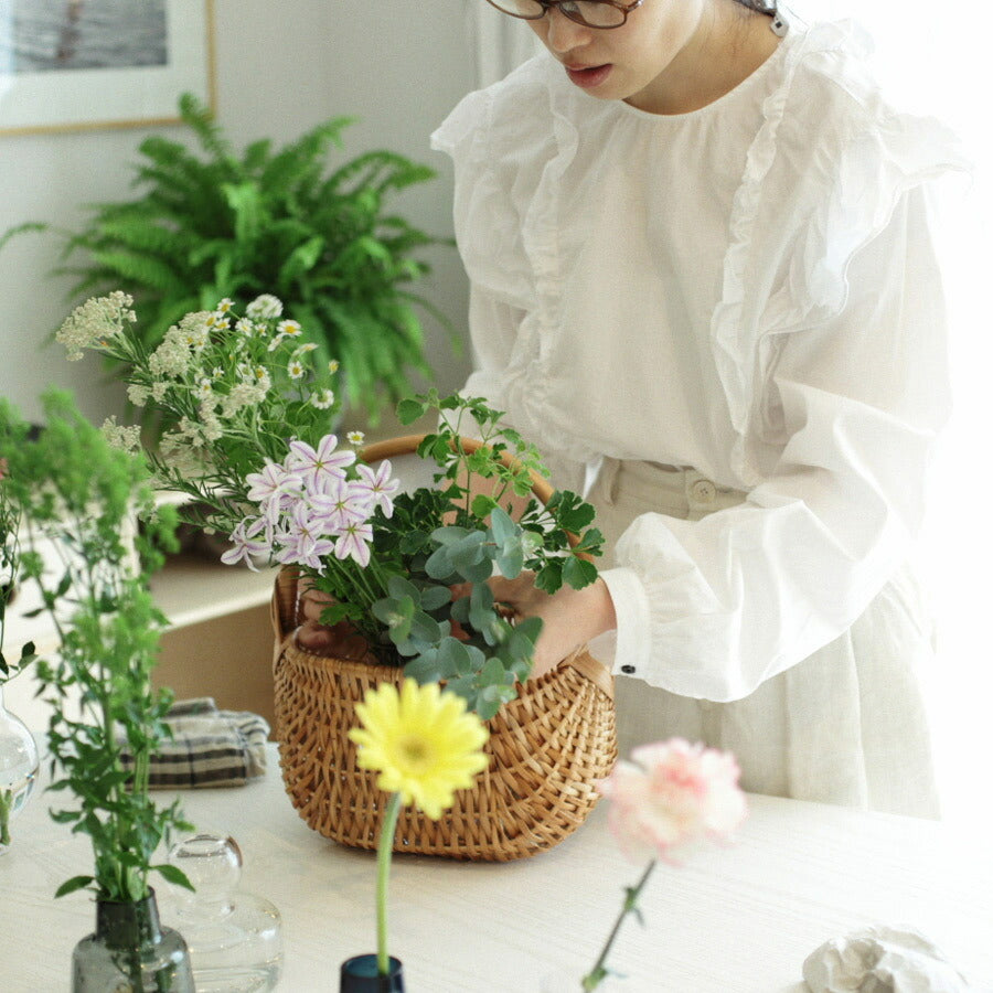 少し高さがあり安定感のあるトールバスケットには、花を生けました。 今回使ったフラワーベースはSKRUF ROベース クリア。 トールバスケット のかたち![]()