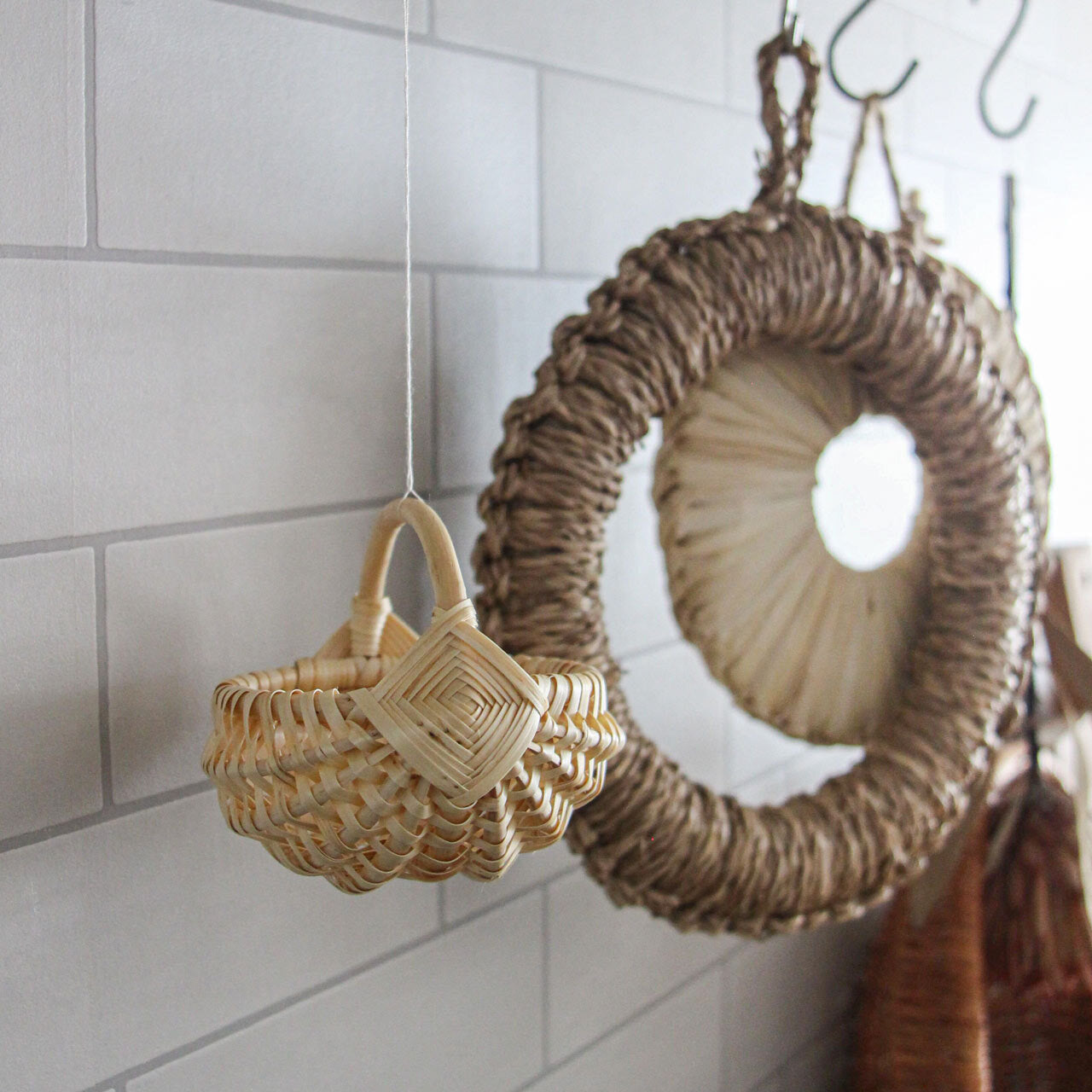 ![]() 手のひらサイズの小さなバスケットかご集めが趣味のわたし。 素敵なかごを見つけてはついついお迎えしていたけれど、今日はいつもとちょっと違うものに目をひかれました。 ラトビアのPinumu Pasauleさんが作るミニバスケット。こんなに小さいかごがあるんだ!とはじめは驚きでした。 実際に手にとってみると、なんとまあ可愛らしい。 マッシュルームバスケットをそのまま小さくしたような、ミニサイズのかご。 小さいからこそ、職人さんの細やかな手仕事が光るかごなのです。 ![]() ミニチュアサイズのかごは、収納よりもインテリアとして楽しむことに。 クリスマスシーズンはオーナメントとしてツリーに飾ります。 リトアニアで作られているKitoシリーズとはとても相性が良く、一緒に飾ると一気に北欧の雰囲気を感じます。 ![]() 持ち手の付け根に施された菱形の美しい飾り編み。 ゴッズアイ(God's eye:神の目)と呼ばれており、ラトビアならではの伝統的な手法で、編める職人さんが少ないとも言われている希少な編み柄なのです。