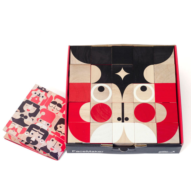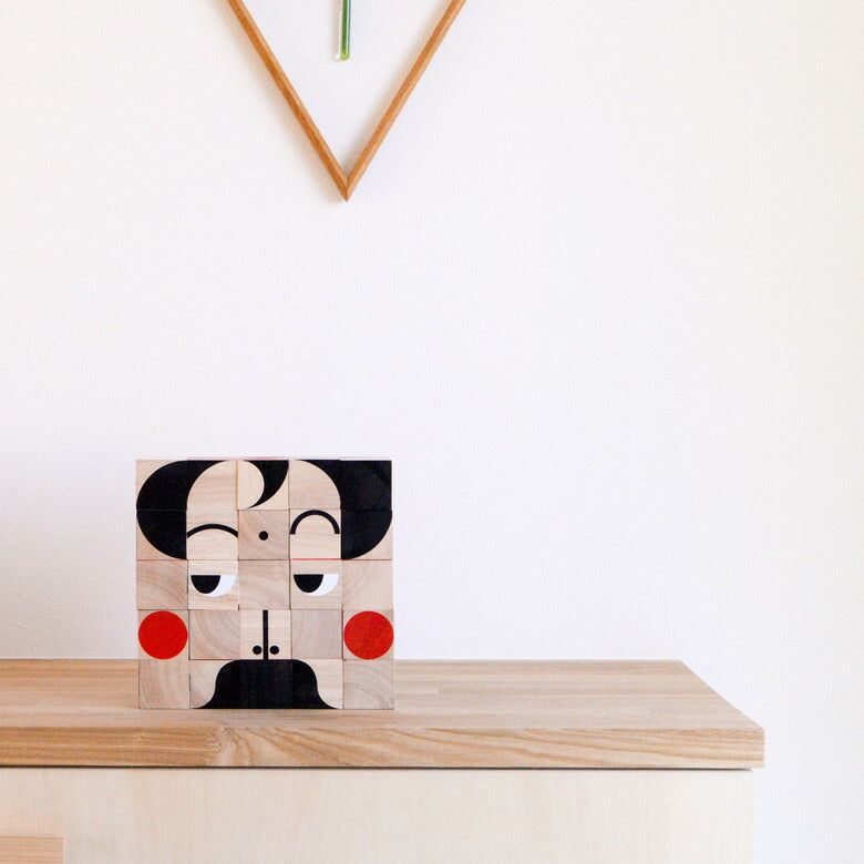25個のブロックを組み合わせてあそぶ木製パズルのフェイスメーカー。6面にシンプルな模様が描かれていて、想像力次第で何通りもの作品が作れます。デザイン性が高いので気に入ったものができたらしばらくインテリアとしてお部屋に飾っても素敵ですね。コットンバッグが付属しているので片付けも簡単です。日々の暮らしにアートをとりこみ、年齢を問わずクリエイティブな感性に磨きをかけるミラーグッドマンの玩具は世代を超えて楽しめる知育玩具として海外でも人気です。 Miller Goodman(ミラーグッドマン) イギリスのブライトンを拠点に活動するZoe MillerとDavid Goodmanの2人組デザインユニット。自由でアーティスティックなデザインに想像力を掻き立てるデザインプロダクトとしてNY Times StyleやELLE DECORなどのデザイン誌や大手メディアでも紹介され注目される。世界各国のショッピングセンターや病院、美術館などでインスタレーションを開催し、そのモダンなデザインと遊び心のある作品で人々を魅了している。 ■商品名 Miller Goodman ミラーグッドマン フェイスメーカー ■サイズ(約) 幅21×奥行21×高さ4cm ブロック25個入 ■素材 ラバーウッド ※ヨーロッパ玩具安全性管理基準CN-EN71/日本食品衛生法検査済み ■対象年齢 3歳以上〜 ■Miller Goodmanのブロック