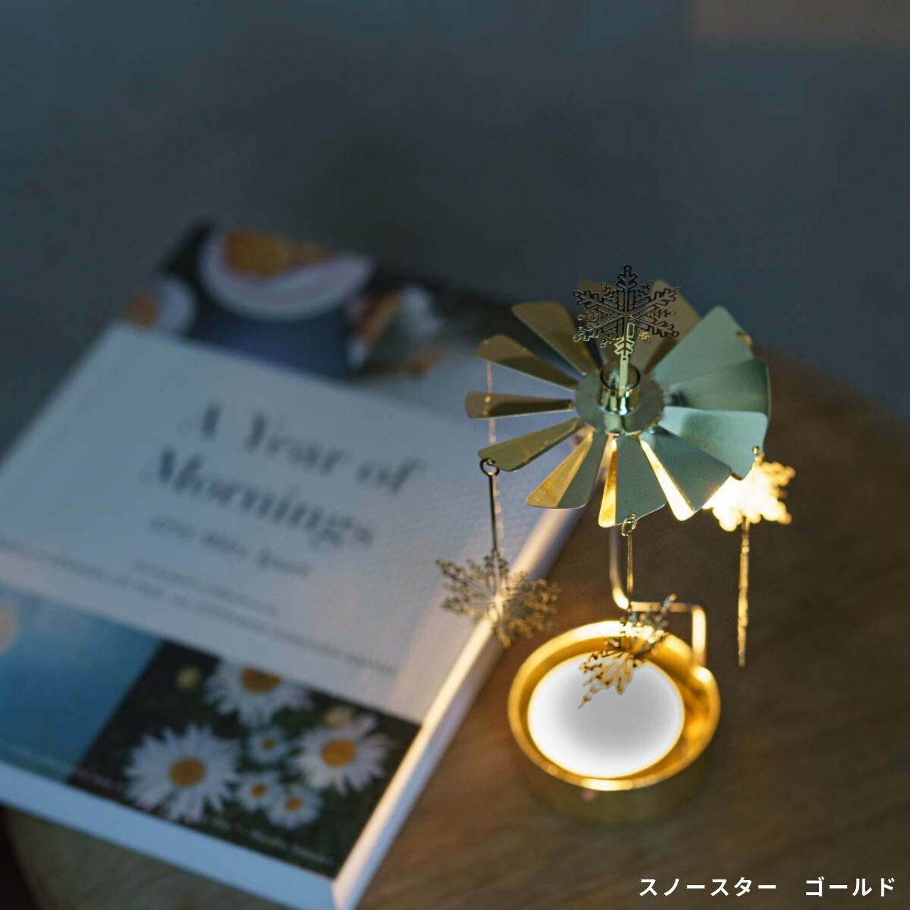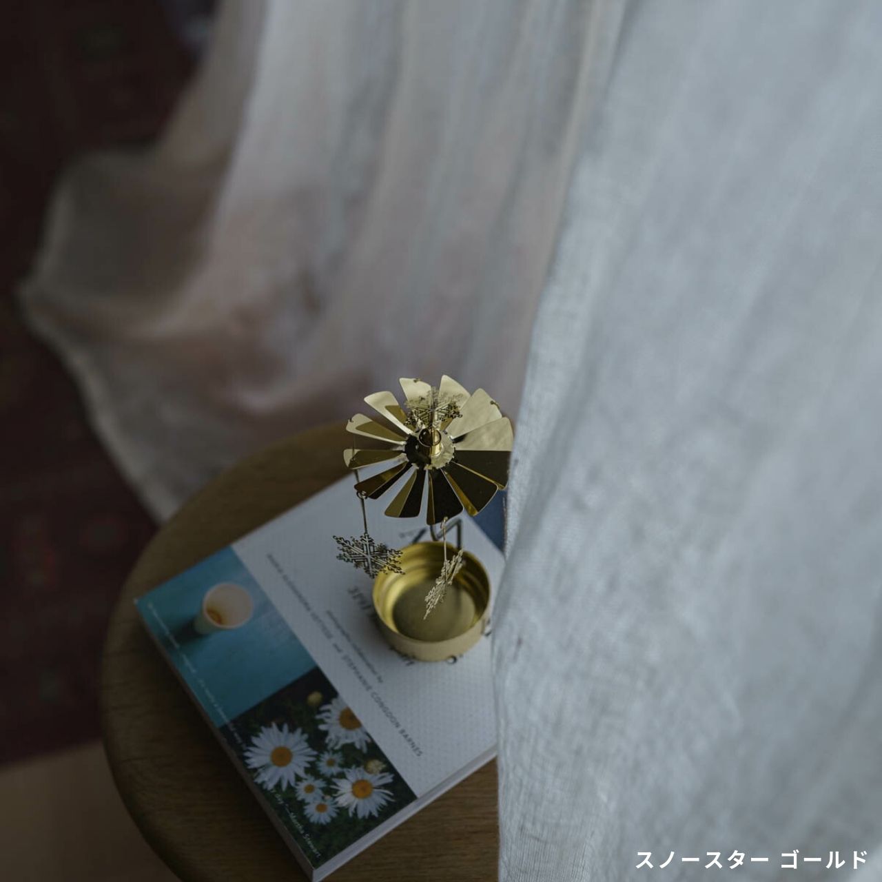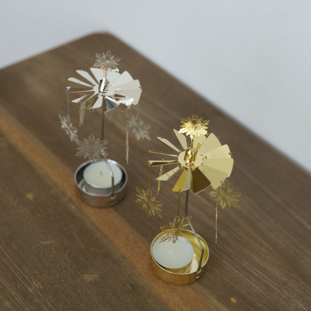 スウェーデンの雑貨メーカー「PLUTO」のロータリーキャンドルホルダー。 キャンドルに温められた空気が上昇しオーナメントがまわりはじめます。 火を灯したばかりはゆっくり、温まってくると少しずつ回転に拍車がかかります。 炎の明かりとメタル素材が反射するキラキラはおうち時間にやさしくあたたかい雰囲気を運びます。 火を灯さなくても窓辺に置いておけば風を受けて回転します。 表情を変えるキャンドルホルダーをゆったり眺めてお楽しみください。