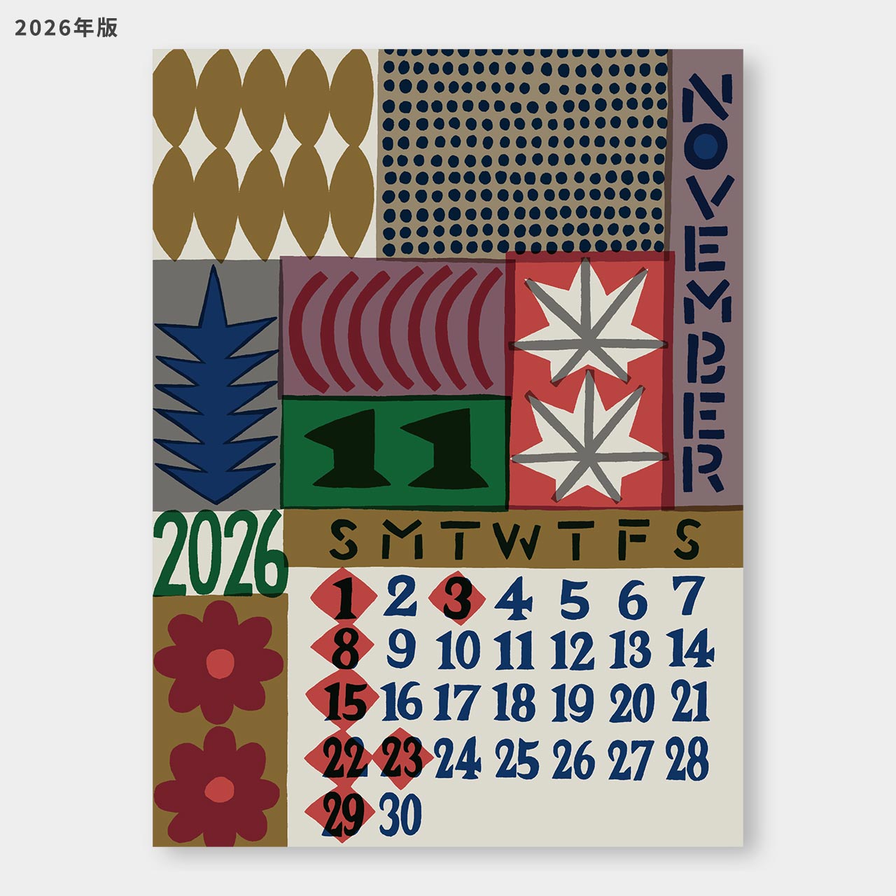 よつめ染布舎 かれんだ 2026年 壁掛けカレンダー