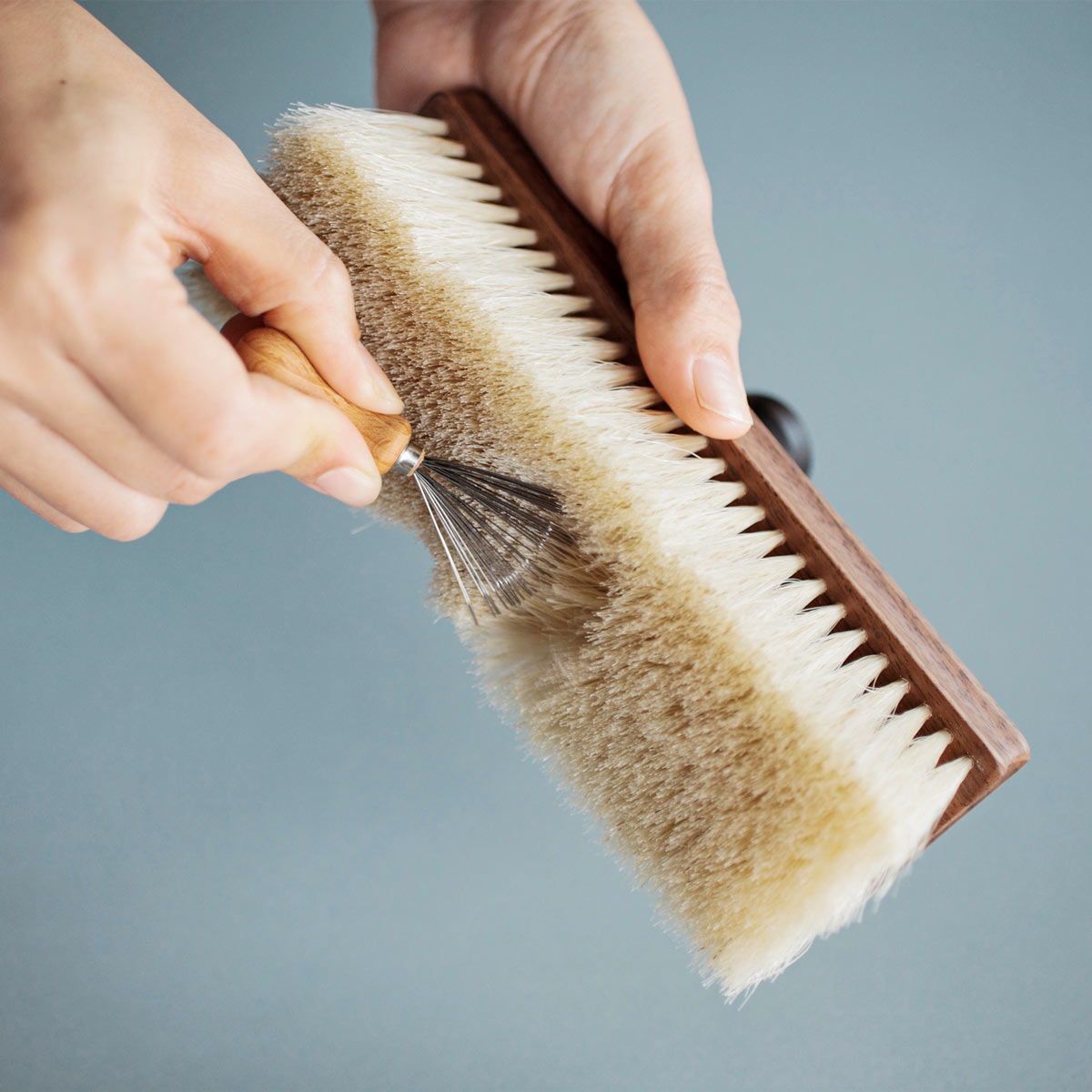 ブラシのお手入れも習慣に。 ブラシはこまめにリムーバー(毛取り)でメンテナンスすることで清潔に長く使えます。 天然毛でできたブラシは洗剤や水洗いは避けて、ブラシクリーナーを使ってゴミやホコリを取ると清潔に長持ちします。ブラシ毛の密度の高いブラシは高品質なブラシで毛の奥までほこりが入りこないうちにお手入れしましょう。 クリーナーでブラシ面を浅くなでるように全面をとかして、軽いゴミやホコリを取り除きます。このときにクリーナーのとおりが悪く引っかかる場合には無理に力を入れずに、とかす方向を変えてください。一方向に毛をなでるようにクリーナーを移動させてください。ブラシ毛の付け根部分には無理にクリーナーを差し込むと毛が抜けてしまうことがありますのでご注意ください。 ※植毛ブラシは使い始めにはムダ毛が落ちますが、落ち続ける場合にはクリーナーは使用しないでください。 Redecker(レデッカー) はドイツで1936年創業の老舗ブラシメーカー。天然素材を使ったひとつひとつ手作りの製品は温かみがあり、生活道具としての機能をきちんと兼ね備えています。 ■商品名 レデッカー ブラシクリーナー ■サイズ 約 全長約7.5cm (リムーバー長さ:約3.5cm) 重さ:約12g ■素材 ブナ材(無塗装オイルフィニッシュ)、ステンレス ■使用時の注意 ハンドメイドのため、使い始めにステンレスのリムーバー部が偏っている場合があります。間隔を調整のうえ使用してください。 ■製造 メーカー:Redecker(レデッカー社正規輸入品) 生産国:ドイツ JANまたはEANコード:4037892870004 |