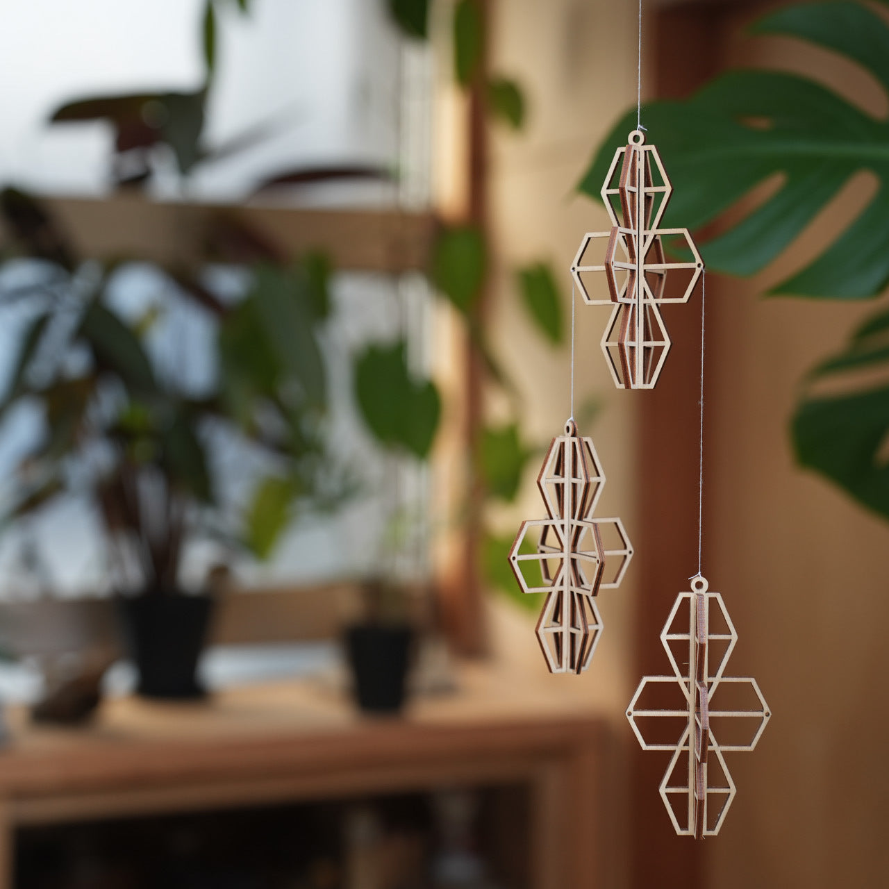 一部商品に旧価格の表示が残っているものがありますが、何とぞご了承ください。 ![]() kitoの組み立て方 写真はKITO21 プラント十字にクロスをさせたまま上下にスライド、溝を合わせます。 ![]() 単独のオーナメントとしてはもちろん、糸を通せる穴があるので、何個もつなげて飾れます。![]() コマンド™フックが2セットついているので移動が簡単にできます。窓際と壁際にとりつけ、昼間は窓際で風を感じ夜は壁際で影を愉しむのもいいですね。 Kito 光と風を愉しむ木製オーナメント深い緑に囲まれたリトアニアの工房で1個1個ていねいに作られる木製のオーナメント「Kito」。巧みなレーザーカットによりヒンメリを思わせる美しい模様に切り抜かれており、木のぬくもりと繊細な北欧のデザインが同時に表現されています。 気軽に飾れるSサイズ3点セット手持ちのkitoにもう少しボリュームがほしい。小さいスペースになにかアクセントがほしい。そんな方にぴったりの、場所を選ばず気軽に飾れるSサイズのおすすめ3点セットを選びました。Sサイズ3点を組み合わせて飾るのはもちろん、お手持ちのkitoに付け足してボリュームを出したり、植物と一緒に飾るなどいろいろな愉しみ方ができます。クリスマスシーズンにはツリーのオーナメントとして飾ってもいいですね。 ■商品名 ■サイズ 約 ■パッケージのサイズ(1個あたり) 約 ■素材 ■製造 ■ギフトラッピング 現在はラッピング済みで販売している商品を除き、ギフトラッピングは承っておりません。お客様自身で簡単にラッピングができる以下のキットをご活用ください。 ![]() 購入前に一度ご確認ください